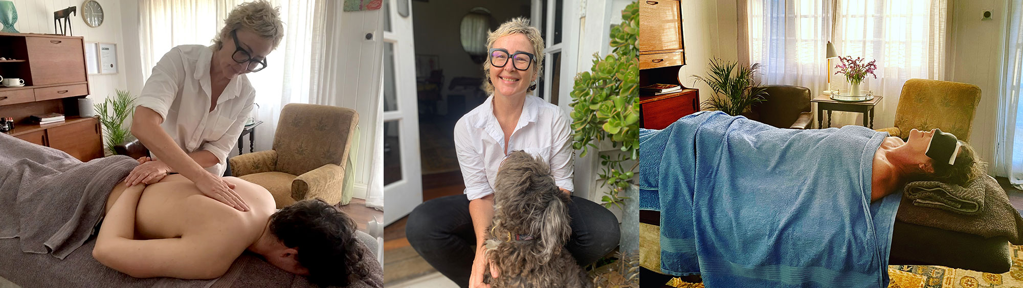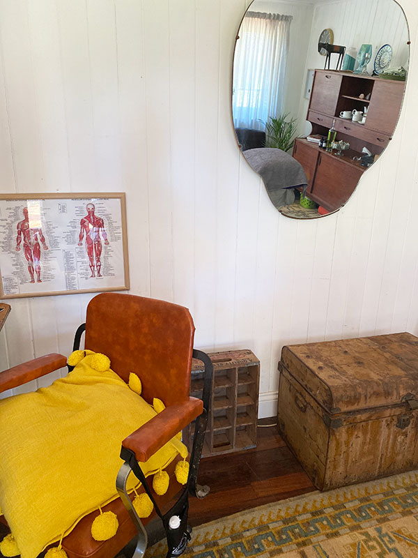 A bespoke massage treatment room in a 125 year-old, renovated weatherboard cottage, surrounded by leafy, mature trees and tranquil birdsong.